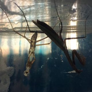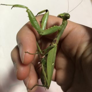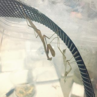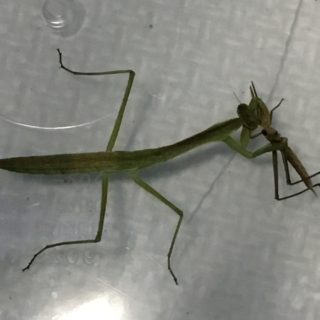 本日も多くのカマキリが2齢へと成長を遂げ、1齢も少なくなってきました。 写真はコオロギを食べる2齢幼虫。しっかりとコオロギを持ってとてもか...