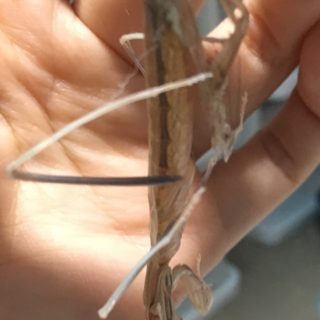 カマキリ達全員7齢じゃん?次には羽化かな? くらいに思っていたのにまさかの脱皮の尻曲がりさん 2019/08/09 こちらはぬけがら。欠損...