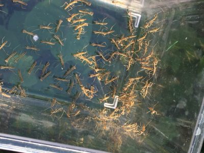 孵化数日で死んでしまった個体も何匹もいる。特に25日に公園で採取した巨大卵嚢の個体はなぜか弱くて頭を悩ませています。