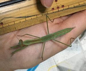 ハラオレはこんな感じで手乗りにちょくちょくして折れた癖をちょっと治してあげます。これだけではなかなか治りませんがやらないよりはマシでしょう。ずっと折れた状態ではカマキリにも負担でしょうしね。