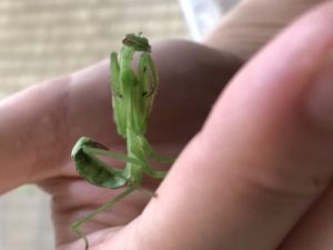 帰省の為飼育の縮小をしていっていた我が家ですが、4匹のカマキリが無事?に共に飛行機での旅へお供する事が決まりました。