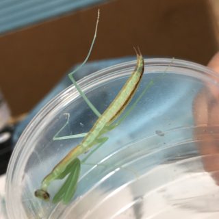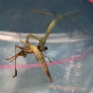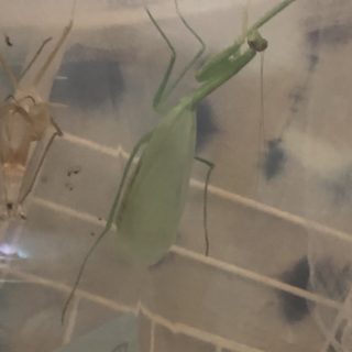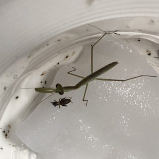 本日も多くのカマキリが2齢へと成長を遂げ、1齢も少なくなってきました。 写真はコオロギを食べる2齢幼虫。しっかりとコオロギを持ってとてもか...