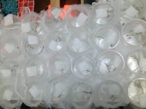 この対策として、我が家では4齢程度まで飼育カップで飼育をしているのでカップの底に脱脂綿を設置するのではなく排水溝ネットの蓋の上に設置をするようにしました。この方が交換も便利だし糞などで脱脂綿が汚れる心配がありませんでした。