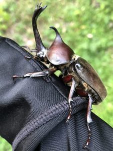 撮影時期からしてお察しの方もいるかと思われますが恐らく寒い季節になってお亡くなりになったと思われるカブトムシです。しかしこの完全体!ちょっとびっくりしました。見た目からは分からないですが持ってみたところ中はスカスカの様でとっても軽かったです。