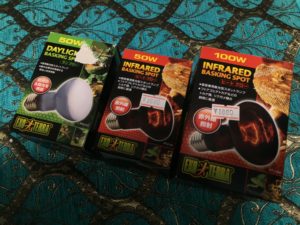 そして我が家の場合はたまたま爬虫類を飼っているので保温ライトも手持ちでほぼ足りました。保温ライトはクリップスタンドに差し込んで使いますがこれ自体をどこか壁の様なところに挟みこんで固定する必要があります。